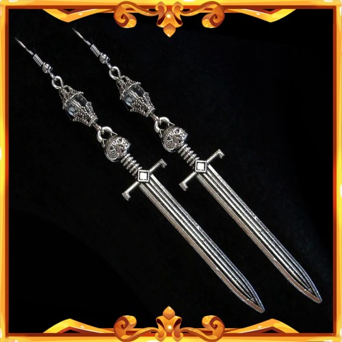 Retournez à Winterfell avec ces boucles d'oreilles épées composées de perles facettées cristal à corolles argentées et de deux pendentifs "Grand-Griffe" la célèbre épée à tête de loup de Jon Snow.